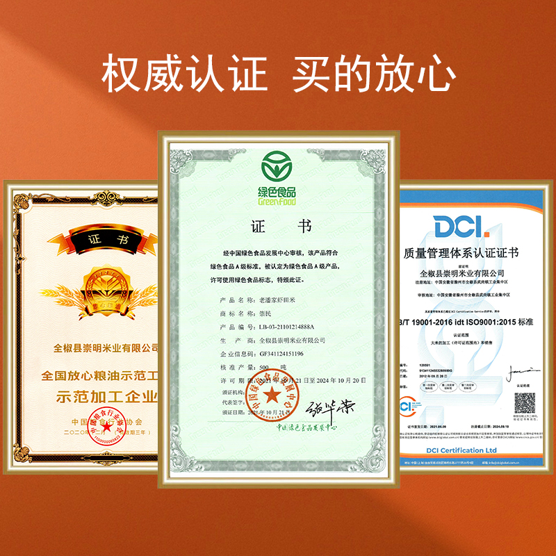 崇明大米在無(wú)污染的條件下種植、養(yǎng)殖,施有機(jī)肥料、不用高毒性、高殘留農(nóng)藥,并在標(biāo)準(zhǔn)環(huán)境、生產(chǎn)技術(shù)、衛(wèi)生標(biāo)準(zhǔn)下加工生產(chǎn)的安全、優(yōu)質(zhì)、營(yíng)養(yǎng)類(lèi)大米,經(jīng)權(quán)威機(jī)構(gòu)認(rèn)證并食用專(zhuān)門(mén)標(biāo)志的安全、優(yōu)質(zhì)、營(yíng)養(yǎng)類(lèi)大米。