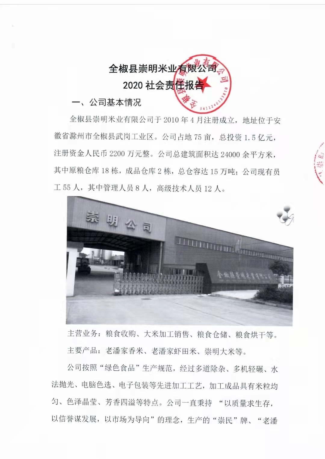 全椒縣崇明米業有限公司2020社會責任報告